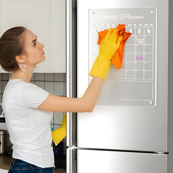 Papierplaner laufen nach einem Monat ab und landen direkt im Mülleimer. Die klare Acryloberfläche lässt sich mit dem mitgelieferten Tuch in Sekundenschnelle komplett reinigen – kein Verblassen, keine Flecken, keine Rückstände. Die Oberfläche ist kratzfest und schmutzabweisend, sodass sie nach hunderten von Wischvorgängen kristallklar bleibt.