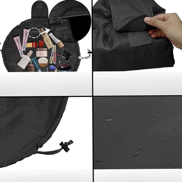Genießen Sie mit GLAMSY eine mühelose Aufbewahrung. Ziehen Sie einfach am Kordelzug, um die Tasche auf ein kompaktes, reisefreundliches Format zusammenzufalten. Sie ist perfekt für Ihren Rucksack oder Ihr Gepäck und hält Ihre Beauty-Tools organisiert und vor Beschädigungen geschützt. Mit ihrer riesigen Kapazität und ihrem Komfort ist diese magische Tasche ein unverzichtbares Accessoire, in dem Sie all Ihre Hautpflegeutensilien verstauen können.