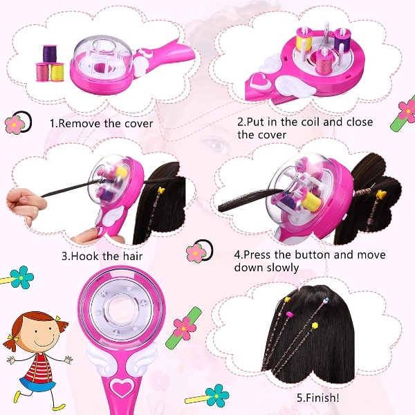 Diese Flechtmaschine ist ein interessantes und unterhaltsames Gerät für kleine Mädchen, denn sie ist extrem einfach zu bedienen und es macht viel Spaß.