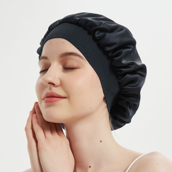 Unsere Haube verfügt über einen breiten Rand aus hochwertigem Seidensatin, der für ultimativen Komfort sorgt, ohne dass Sie auf Stil verzichten müssen. Das breite Band ist so konzipiert, dass es sich für eine individuelle Passform dehnen lässt und luxuriösen und sicheren Haarschutz bietet.