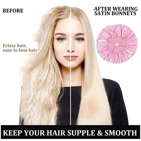 Schützen Sie Ihre natürliche Frisur mit diesen unverzichtbaren Satinhaarhauben zum Schlafen. Geeignet für lockiges, natürliches, gewelltes, glattes, krauses, langes Haar, Zöpfe, Dreadlocks und mehr.