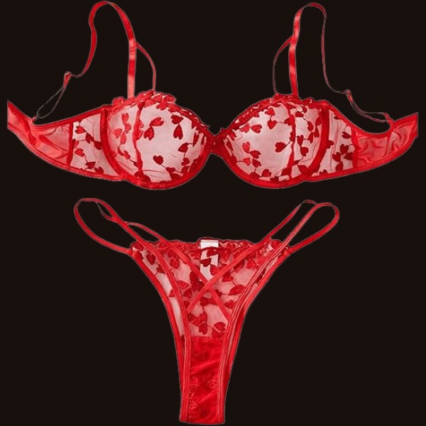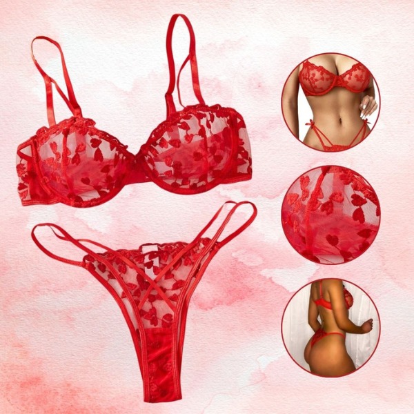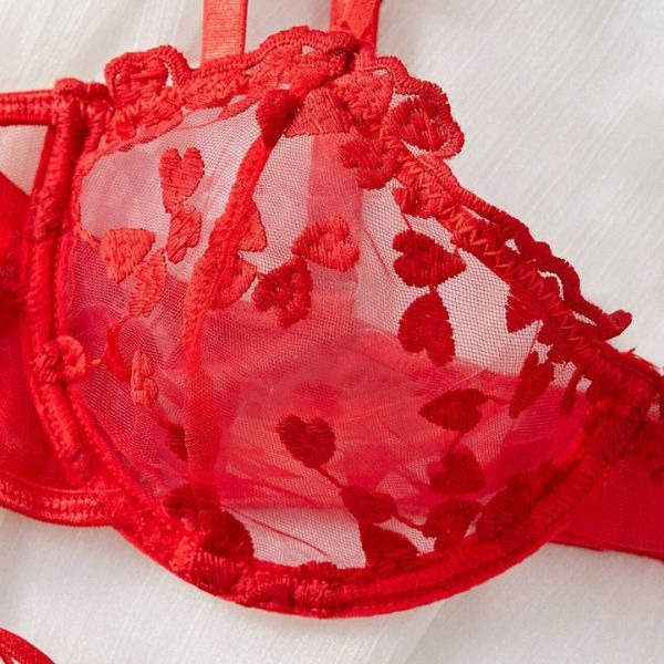 Dieses rote Dessous-Set ist die perfekte Wahl für den Valentinstag! Mit der aufwendigen Herz-Stickerei und den zarten, durchsichtigen Mesh-Details wird dieses Set Ihre romantische Ausstrahlung unterstreichen.